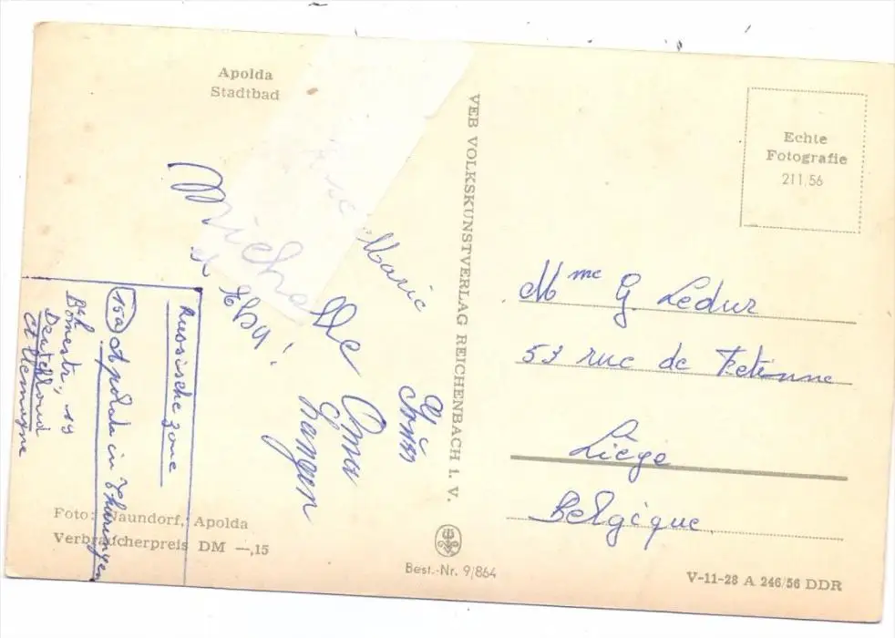 0-5320 APOLDA, Stadtbad, , 1956, hinterklebt