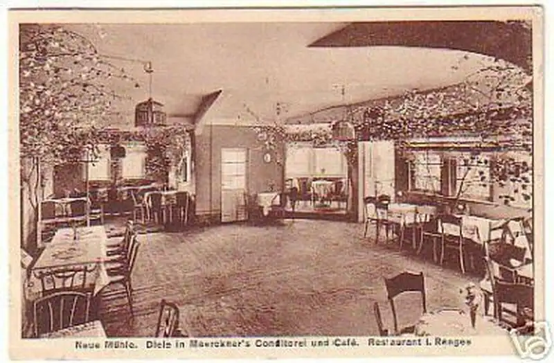 Neue Mühle, Diele in Maerckners Conditorei und Cafe, Restaurant I.Ranges, gelaufen, gute Erhaltung siehe Bild,