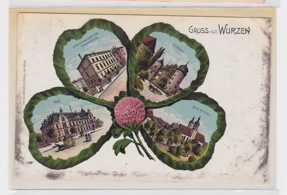 01080 Kleeblatt Ak Lithographie Gruß aus Wurzen 1908