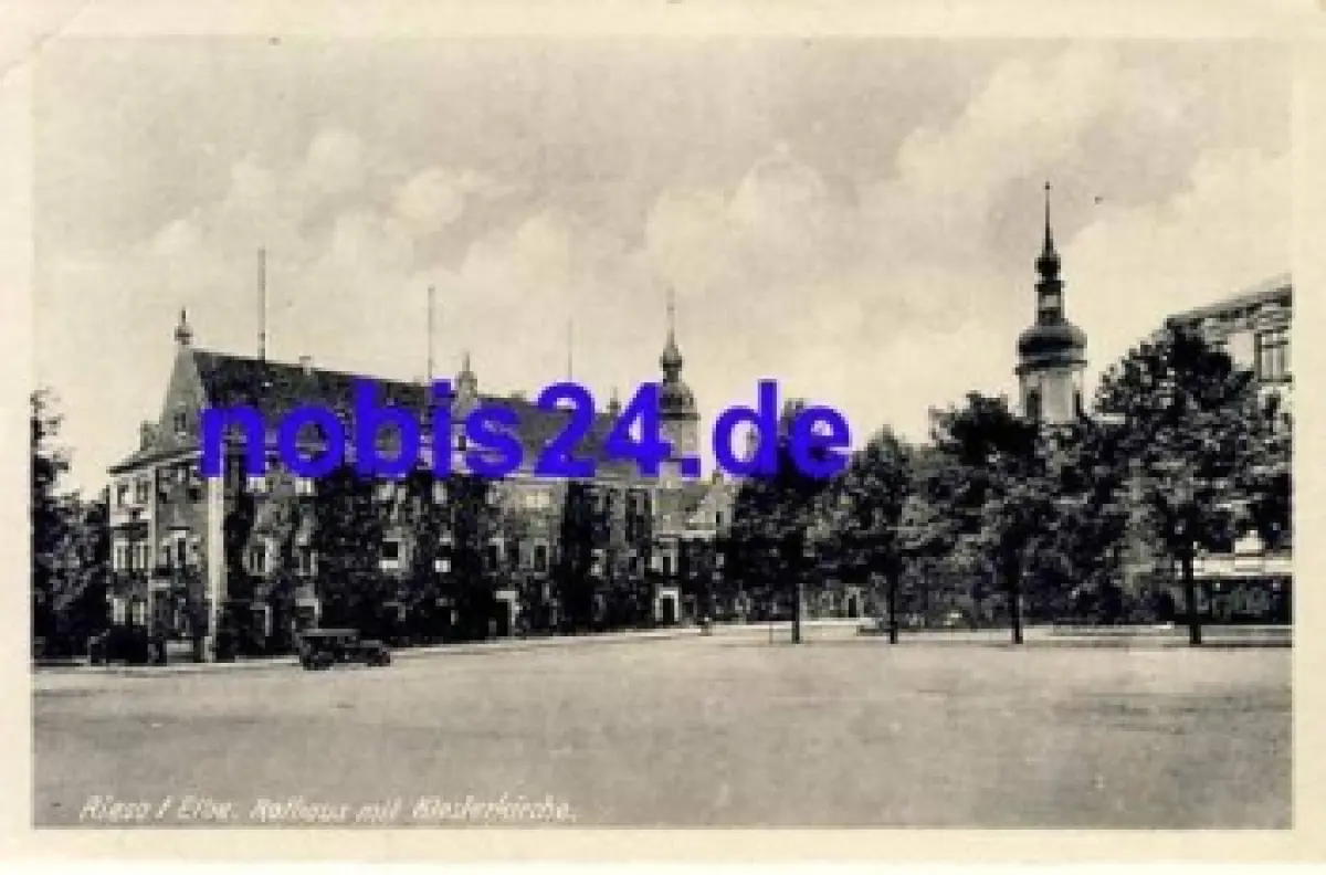 01587 Riesa Elbe Klosterkirche Rathaus *ca.1950