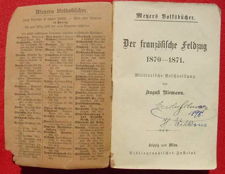 "Der franzoesische Feldzug 1870-1871". Militaerische Beschreibung von August Niemann. Serie : Meyers Volksbuecher Nr. 1120-1124. 400 Seiten. Bibliographisches Institut, Leipzig u. Wien. Umschlag mit Maengeln - innen noch gut