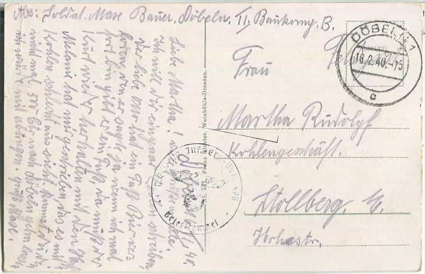 04720 Döbeln - Rathaus - Feldpost - Verlag Franz Richter Weinböhla - Eckknick oben rechts (E37977) gel. 1940