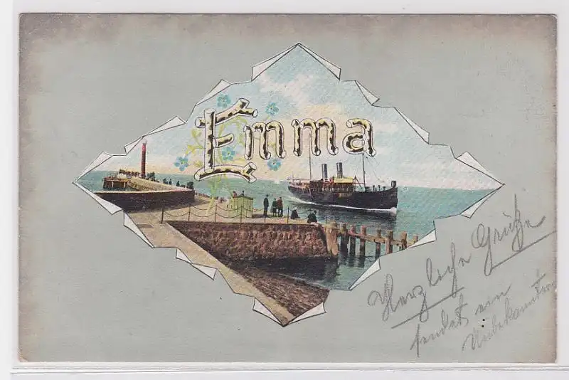 06130 Passepartout AK Emma, Schiff fährt an Hafen