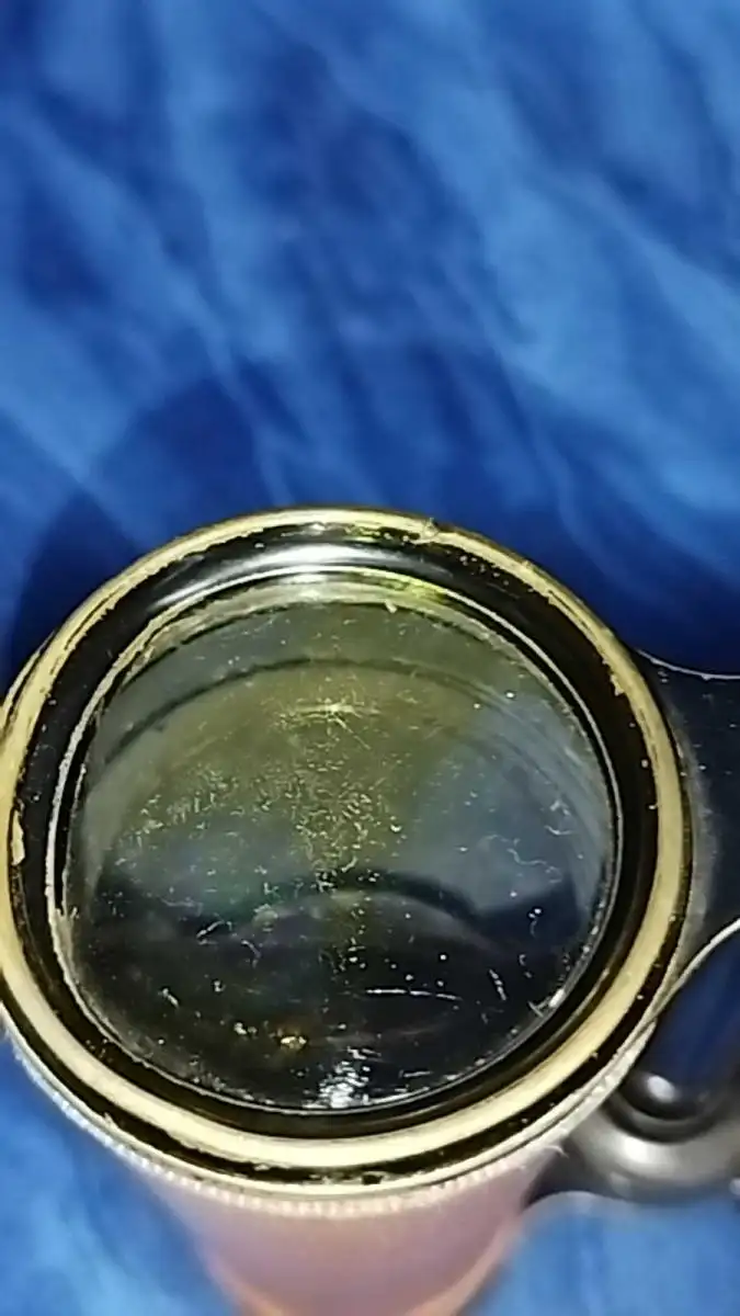 Zu erkennen ist eine Gehäusebeschädigung an der großen Linse. Deshalb konnte ich die Linse nicht abschrauben zum Reinigen. Glas sieht etwas gelblich aus und muss sicherlich gereinigt werden. Sieht aus wie ein Fingerabdruck von innen.