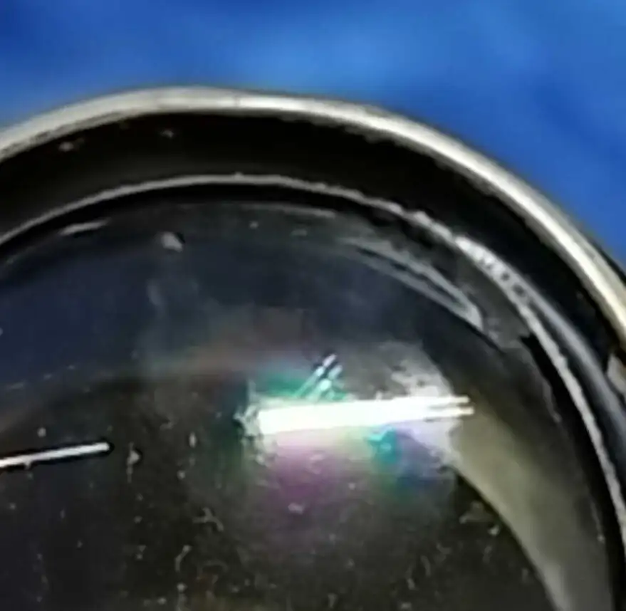 An der anderen Linse gibt es einen kleinen Glasabplatzer innen.