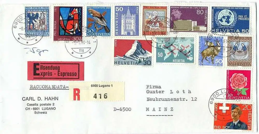 08. Jan. 1980 Brief, Lugano- Mainz, EXPRESS Maße. 24 x 10,5 cm