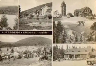 Blick von Talsperre zum Auersberg, Wildenthal Hotel Am Auersberg, Totalansicht, HO-Berghotel Auersberg, Blick ins Bockautal, HO-Selbstbedineung auf dem Auersberg,