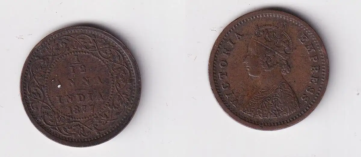 1/12 Anna Kupfer Münze Indien 1877 ss (155131)