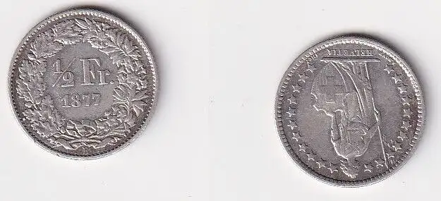 1/2 Franken Silber Münze Schweiz 1877 B ss+ (156565)