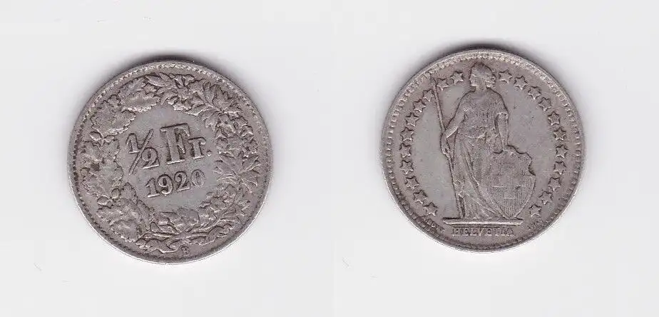 1/2 Franken Silber Münze Schweiz 1920 B (124428)