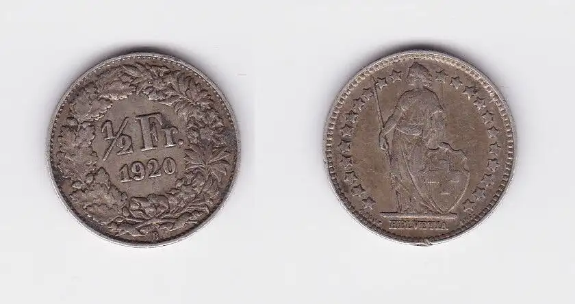 1/2 Franken Silber Münze Schweiz 1920 B (127159)