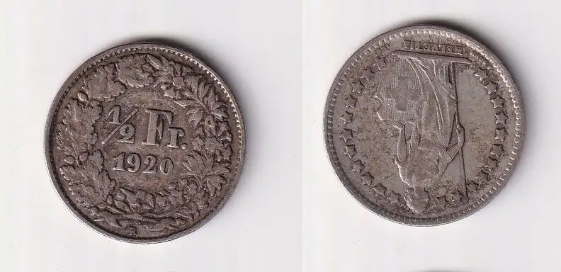 1/2 Franken Silber Münze Schweiz 1920 B ss (105794)