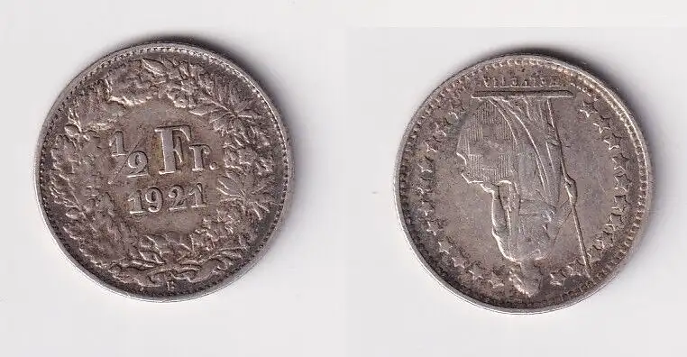 1/2 Franken Silber Münze Schweiz 1921 B ss (105007)