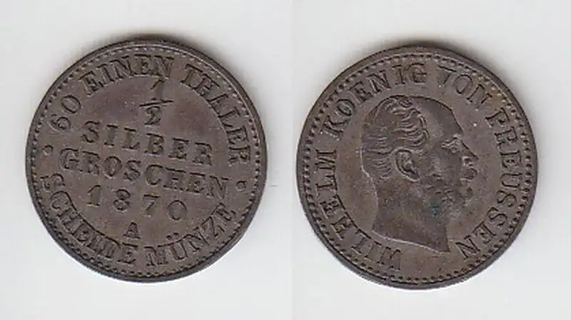 1/2 Silber Groschen Münze Preussen 1870 A ss+