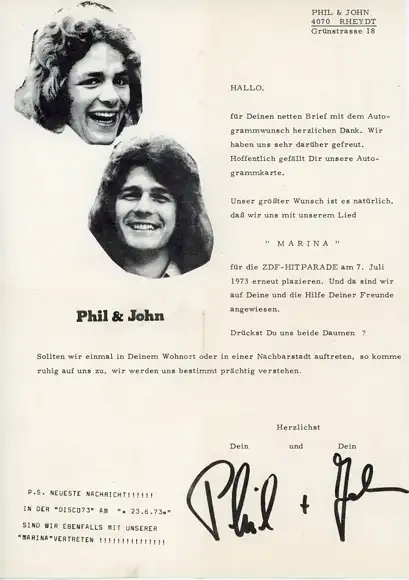 1 Brief und 1 Foto von Phil und John mit ihre Autogramme
