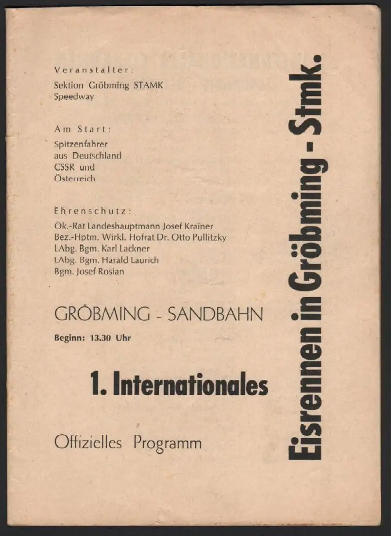 1. Eisrennen Gröbming , ca. 1965 , Eisspeedway , Sandbahn , Speedway , Programmheft / Programm / Rennprogramm !!!