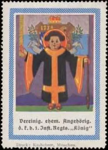 Vereinigung ehemaliger Angehörige d. F. b. 1. Infanterie Regiment König, Münchner Kindl, Größe/Zustand: 6x4 , guter Zustand, Original alte Reklamemarke die seinerzeit für die Werbung benutzt wurde