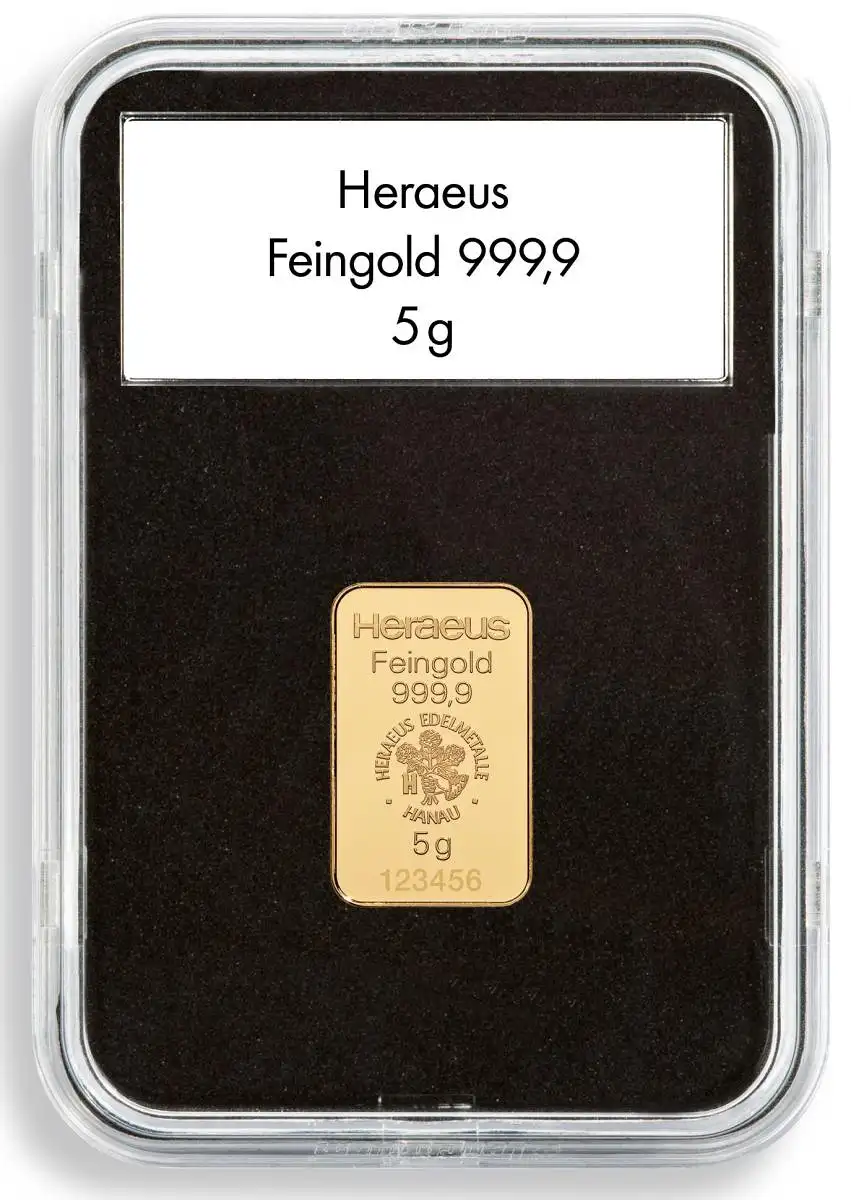 Die Slabs gibt es inzwischen jedoch nicht nur für Münzen, auch Goldbarren können in den rechteckigen Kapseln aufbewahrt werden. Leuchtturm hat speziell für Goldbarren einen Slab entwickelt, der passgenau auf die Form des Goldbarrens angepasst ist. Der Barren kann somit ruckelfrei in die Einlage platziert werden, danach wird der Slab verschlossen. Das Goldstück lässt sich durch die transparente Kapsel in voller Pracht bewundern.