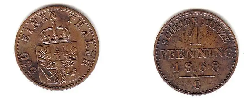1 Pfennig Kupfer Münze Preussen 1868 C ss+