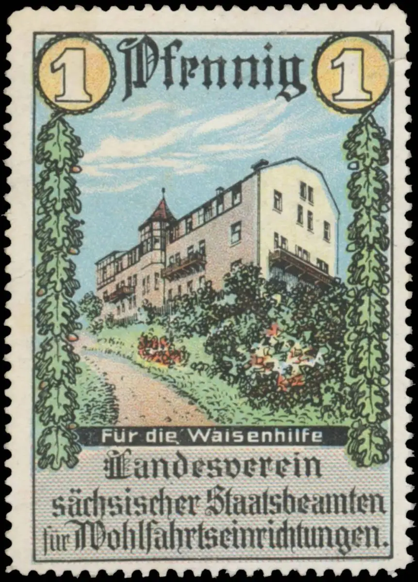 Landesverein sächsischer Staatsbeamten für Wohlfahrtseinrichtungen, Spendenmarke, Größe/Zustand: 6x4 , guter Zustand, Original alte Reklamemarke die seinerzeit für die Werbung benutzt wurde