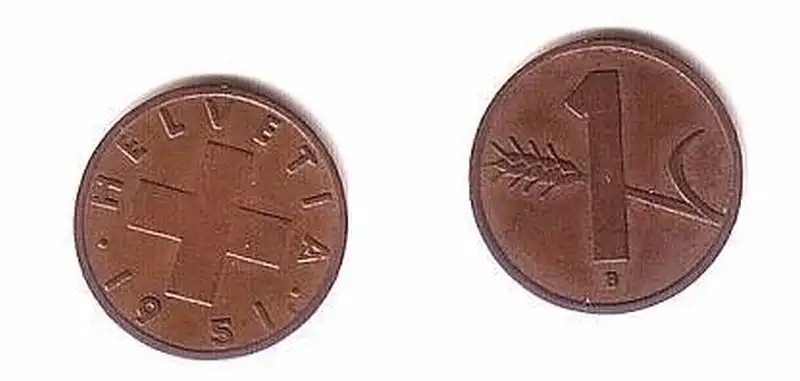 1 Rappen Kupfer Münze Schweiz 1951