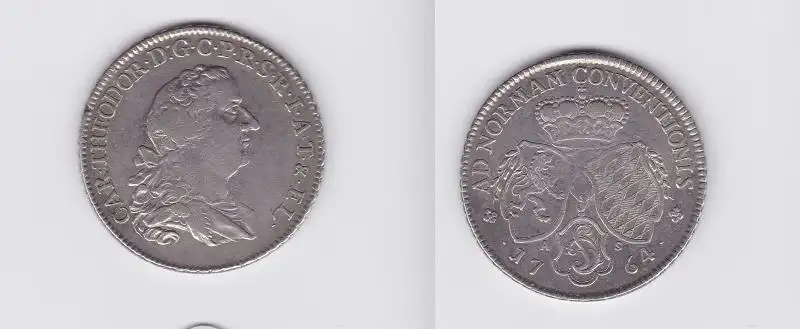 1 Taler Silber Münze Pfalz Kurlinie Karl Theodor 1764 AS (119030)