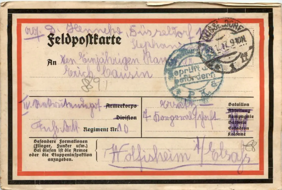 1. Weltkrieg - Feldpost Fuss-Artl. Regiment 10 -638554