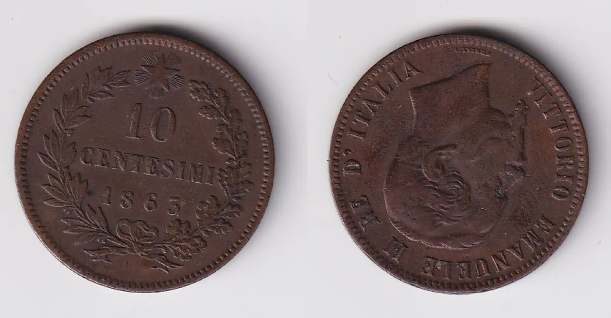 10 Centesimi Kupfer Münze Italien 1863 ss (155334)