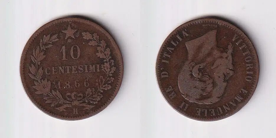 10 Centesimi Kupfer Münze Italien 1866 H f.ss (101229)