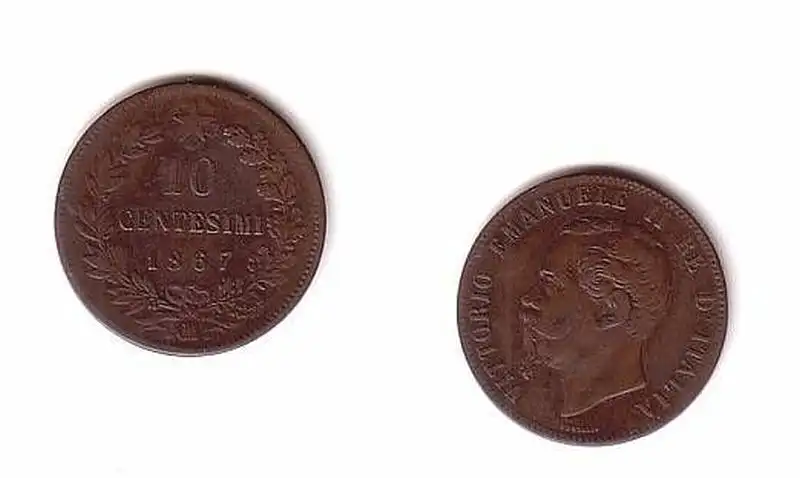10 Centesimi Kupfer Münze Italien 1867 CM