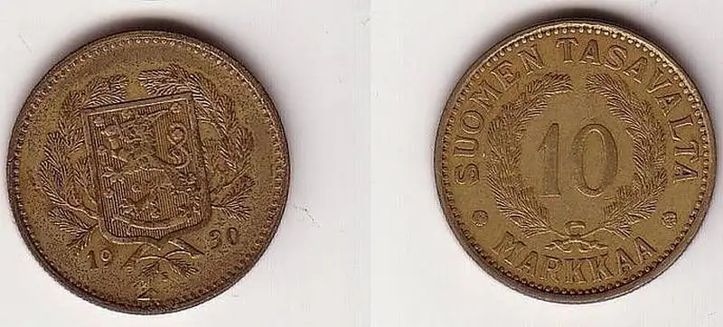 10 Markka Messing Münze Finnland 1930
