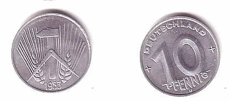 10 Pfennig Aluminium Münze DDR 1953 E vz
