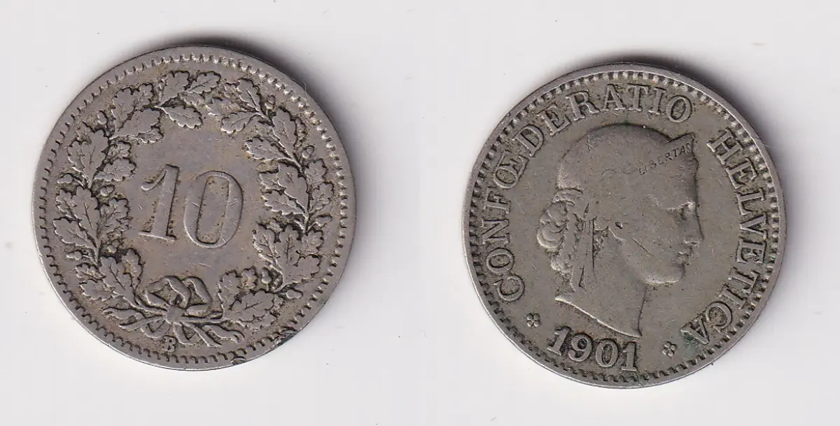 10 Rappen Nickel Münze Schweiz 1901 B ss (151132)