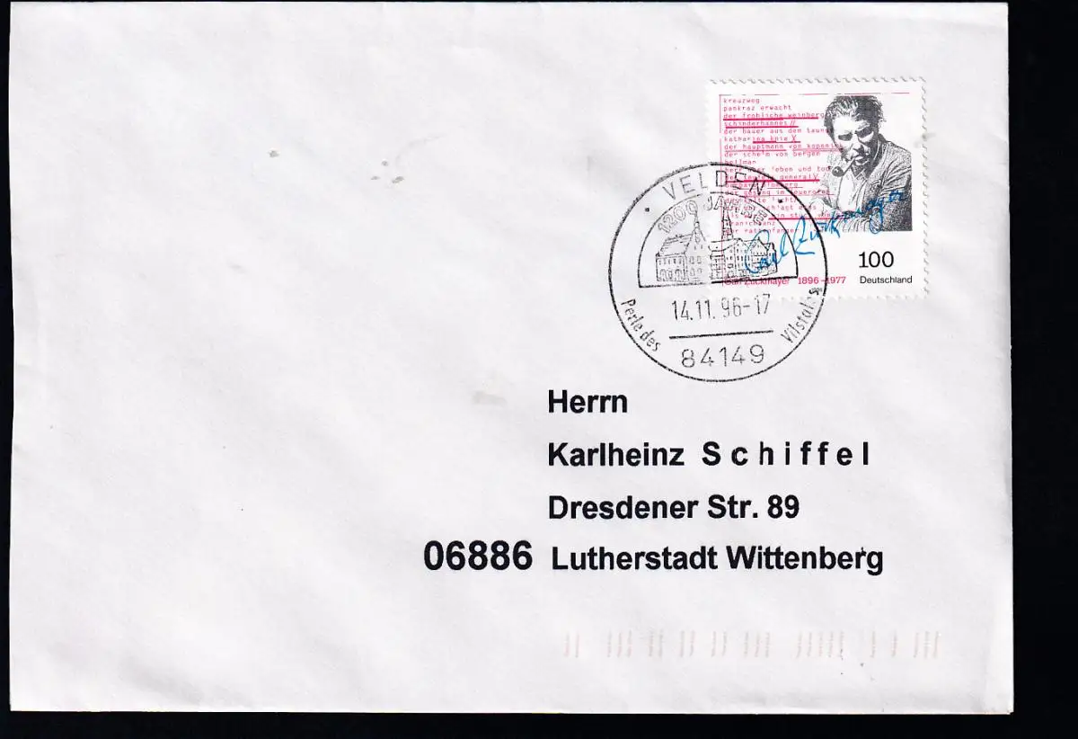 100. Geburtstag von Carl Zuckmayer auf Brief