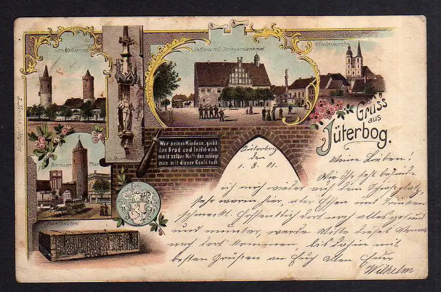 100072 Ansichtskarte Litho Jüterbog 1901 Tezelkasten Rathaus Wappen ...