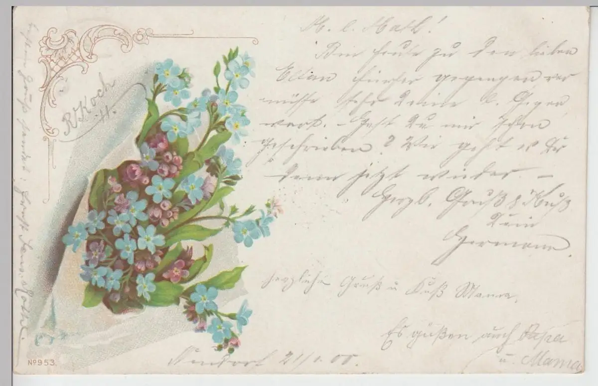 - (100243) Künstler Ansichtskarte, postcard, PPC - Vergißmeinnicht 1900