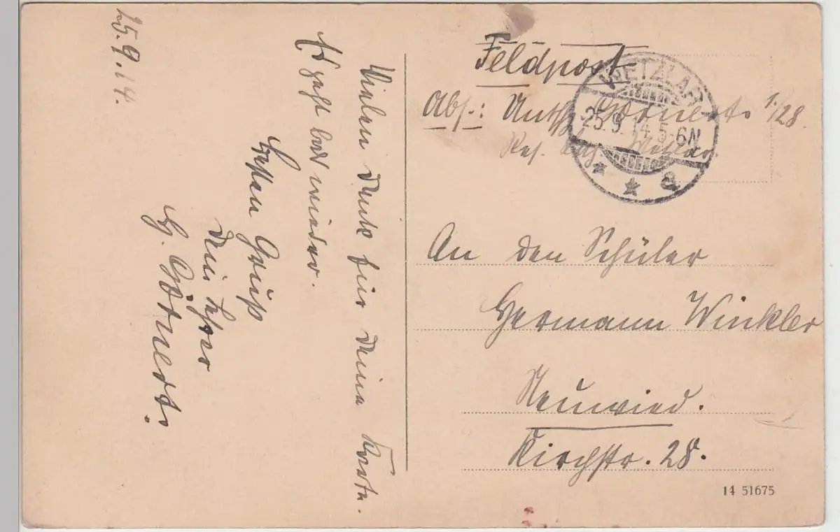 (100268) AK Wetzlar, Königl. Unteroffiziersschule, Feldpost 1914