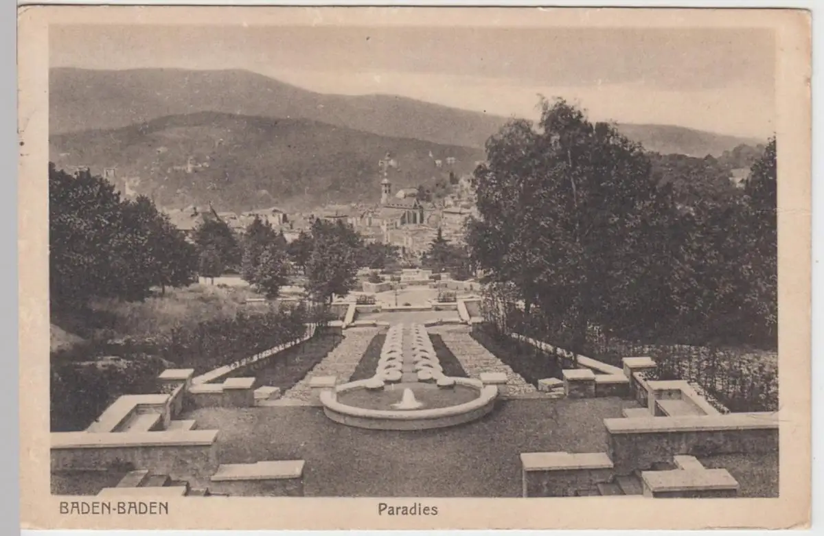 - (100349) Ansichtskarte, postcard, PPC - Baden Baden, Paradies 1927