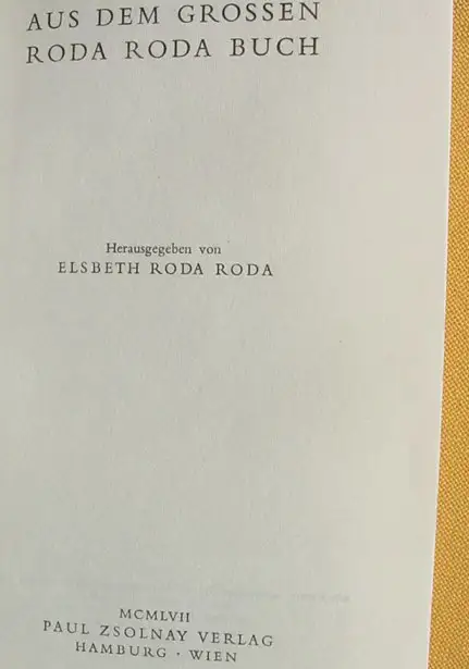 "Aus dem grossen Roda Roda Buch". Herausgeber : Elsbeth Roda Roda. 352 Seiten. Leinenband. Zsolnay-Verlag, Hamburg / Wien 1957