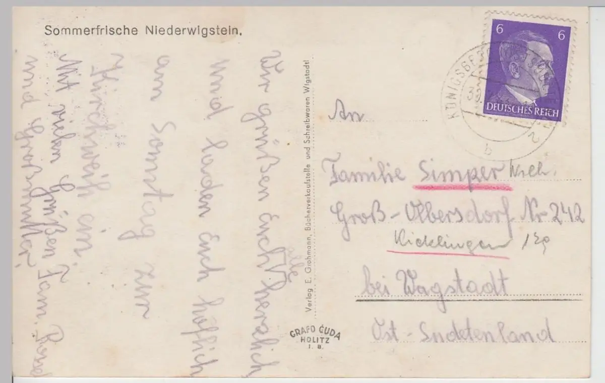 - (100840) Foto Ansichtskarte, postcard, PPC - Niederwigstein, Podhradí 1943