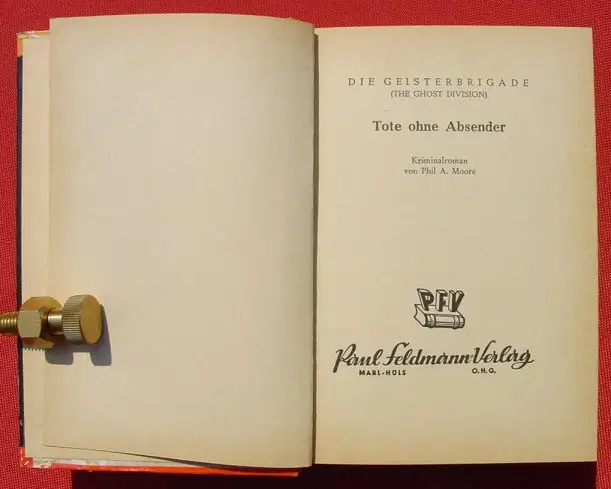 DIE GEISTERBRIGADE (The Ghost Division) "Tote ohne Absender". Von Phil A. Moore. Kriminal-Abenteuer. 256 Seiten. Feldmann-Verlag, Marl-Huels. Ehemaliges Leihbuch mit Gebrauchsspuren
