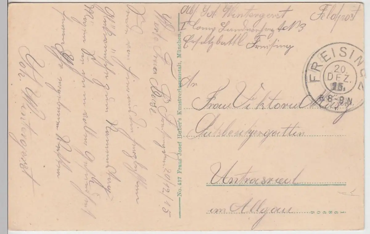 - (101670) Ansichtskarte, postcard, PPC - Freising, Prinz Arnulf-Kaserne, 1915
