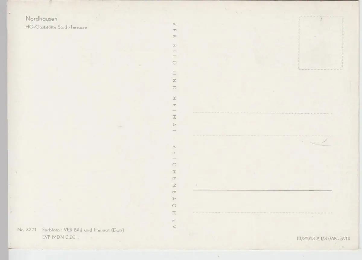 - (102135) Ansichtskarte, postcard, PPC - Nordhausen, HO-Gaststätte Stadt-Terrasse 1968