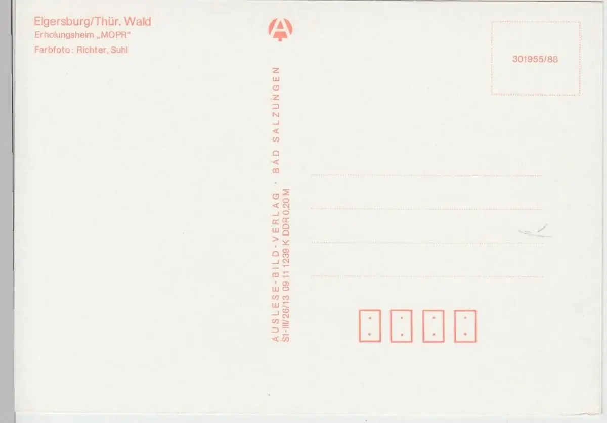 - (102252) Ansichtskarte, postcard, PPC - Elgersburg, Erholungsheim "Mopr" 1988