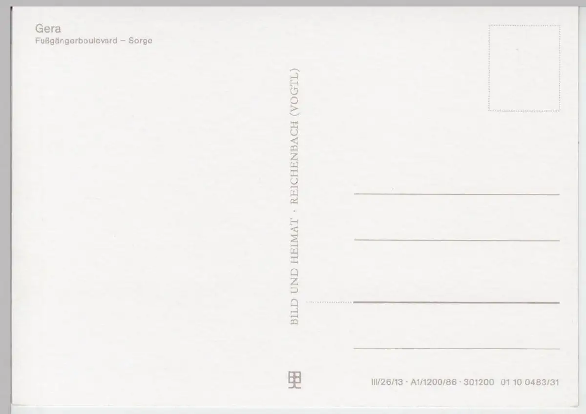 - (102591) Ansichtskarte, postcard, PPC - Gera, Fußgängerboulevard Sorge 1986