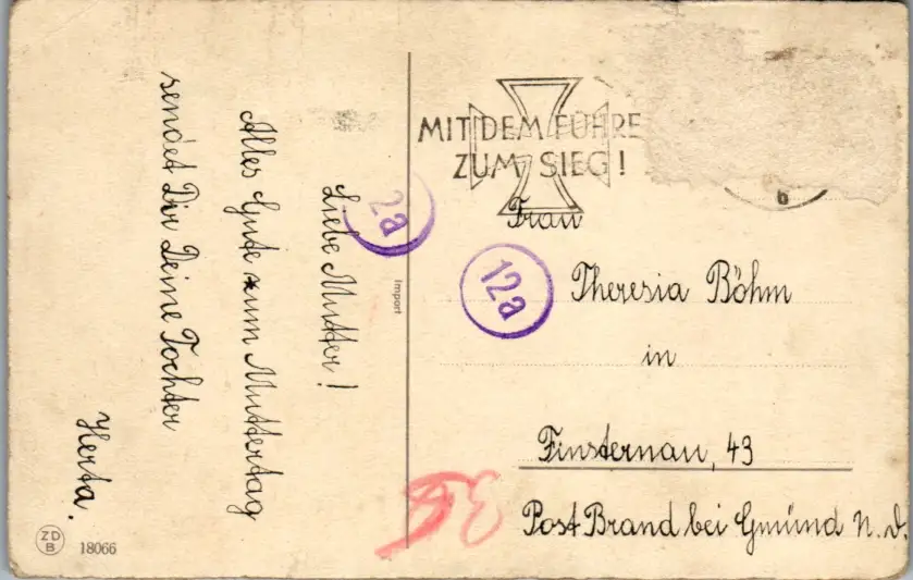 10281 - - Herzliche Grüße zum Muttertag , Blumen , Feldpost - gelaufen