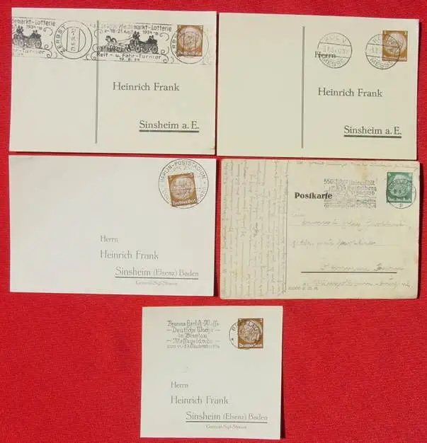 (1030594) Fuenf besondere Stempel aus der 3.-Reich-Zeit auf Postkarten
