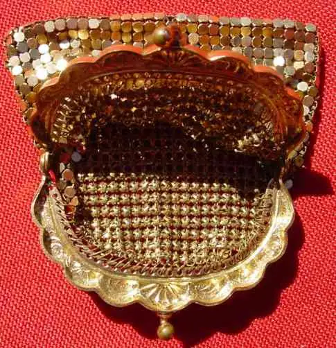 Artikelbeschreibung und Zustand : Siehe Scan. Infos : Sehr huebsches Damentaeschchen, hergestellt mit unzaehligen Metallplaettchen auf Drahtgeflecht, mit Metallbuegel und Schliesse. Format ca. 8 x 8 cm. Feinste Handarbeit. Genaues Alter oder Naeheres leider nicht bekannt