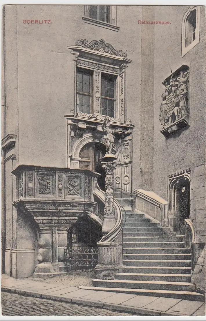 - (103733) Ansichtskarte, postcard, PPC - Görlitz, Rathaus, Treppe, um 1908