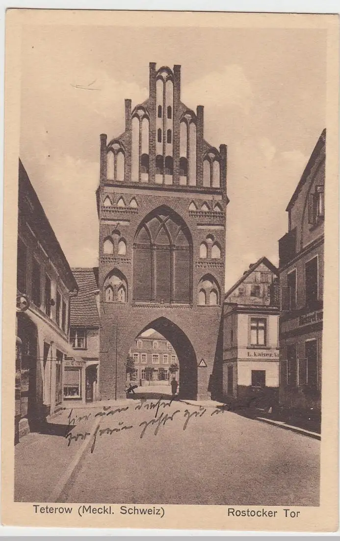 - (103757) Ansichtskarte, postcard, PPC - Teterow, Meckl. Schweiz, Rostocker Tor, vor 1945